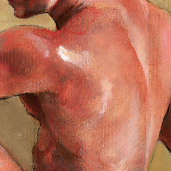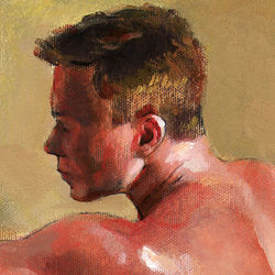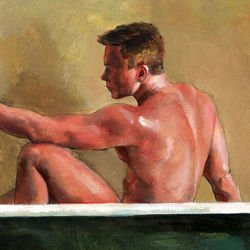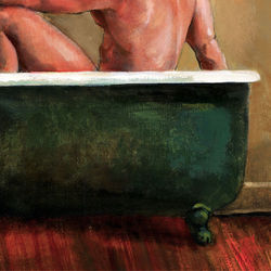 From Philip Gladstone's Tubs Series, compositions that feature bathers, animals and objects in protective, womb-like antique tubs— surreal compositions contrived to express dream-like states of mind (View additional paintings from the series here)