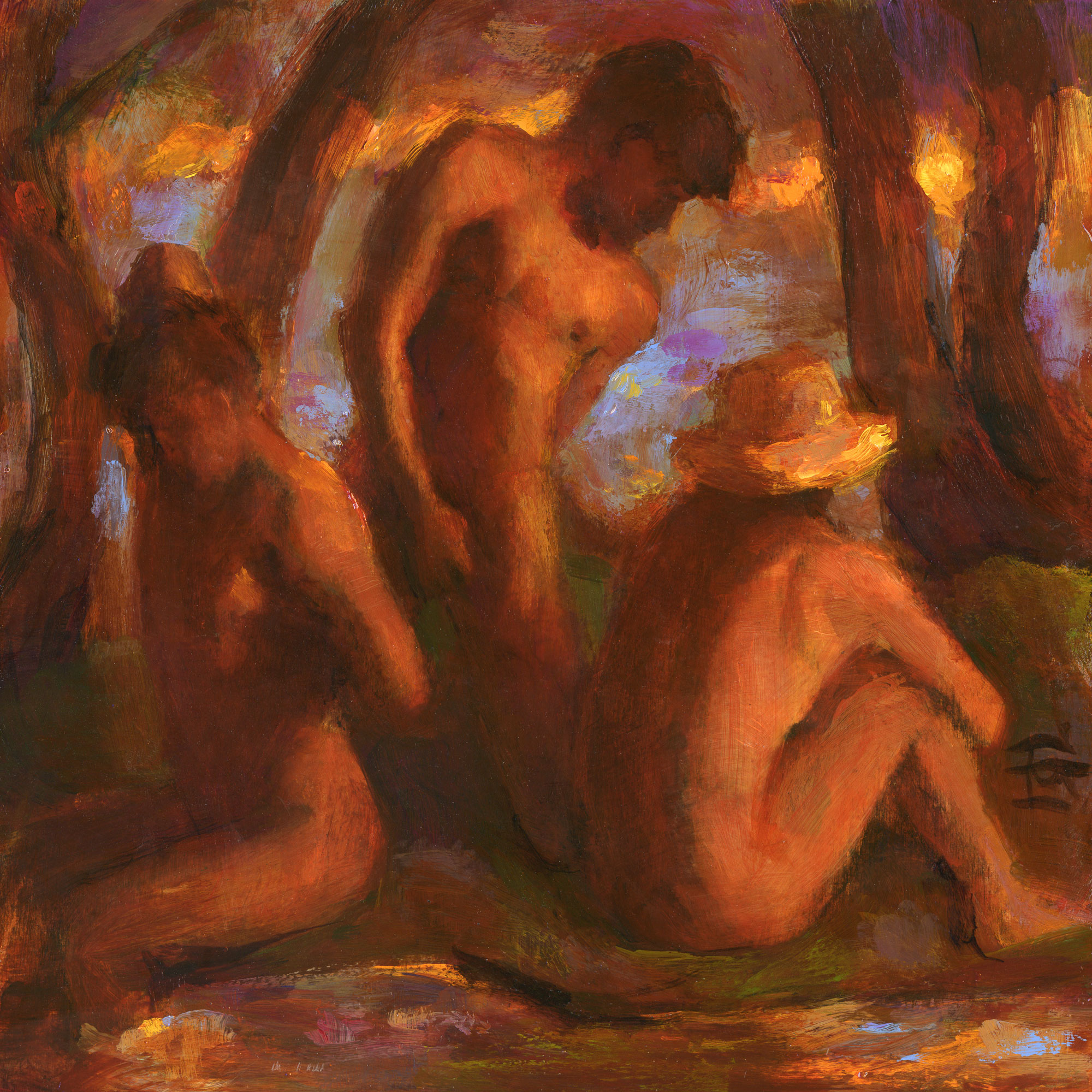 Additional keywords: original art, painting,male nude, bathers, landscape