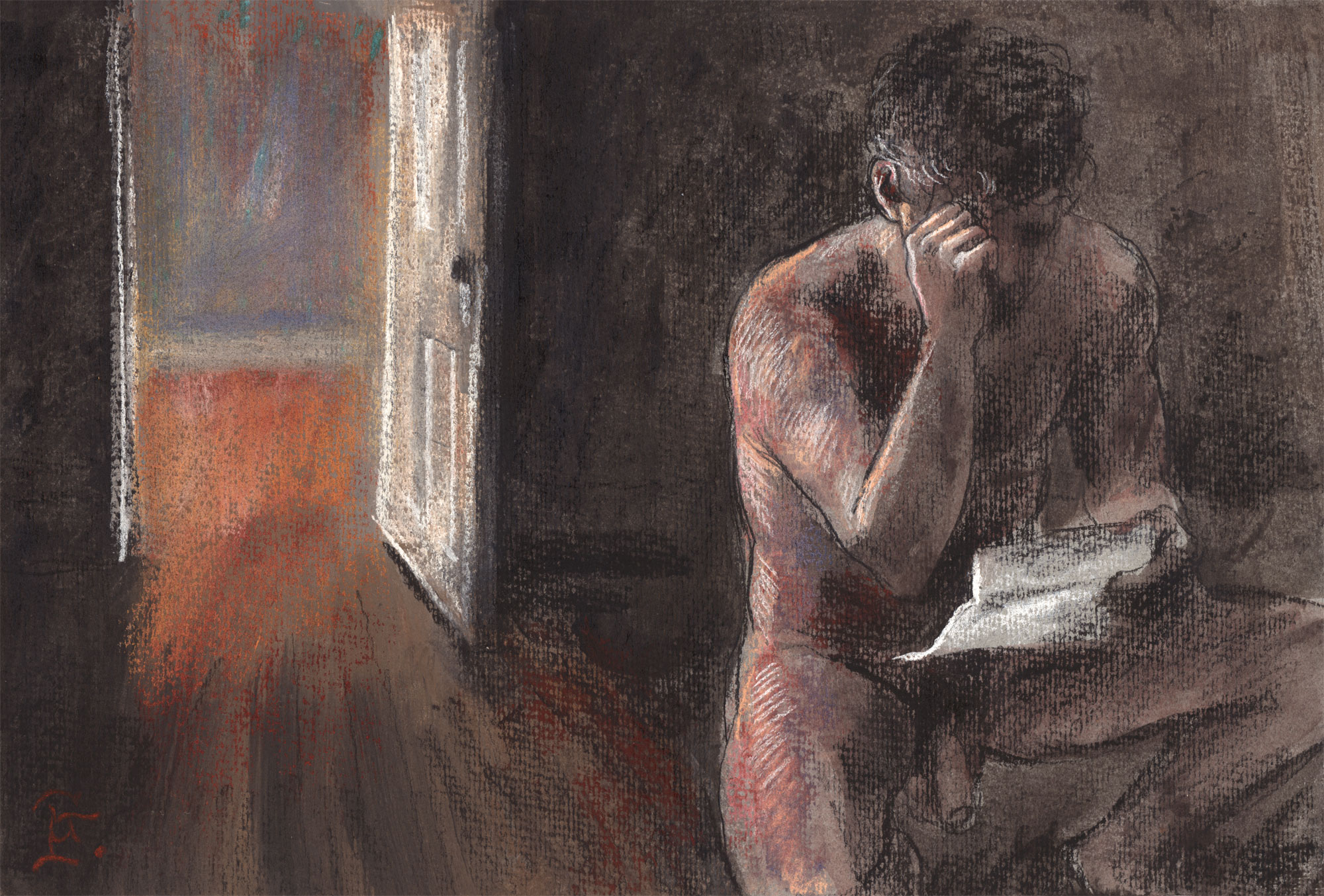 - Made with watercolor, charcoal, white chalk and pastel on Canson paper