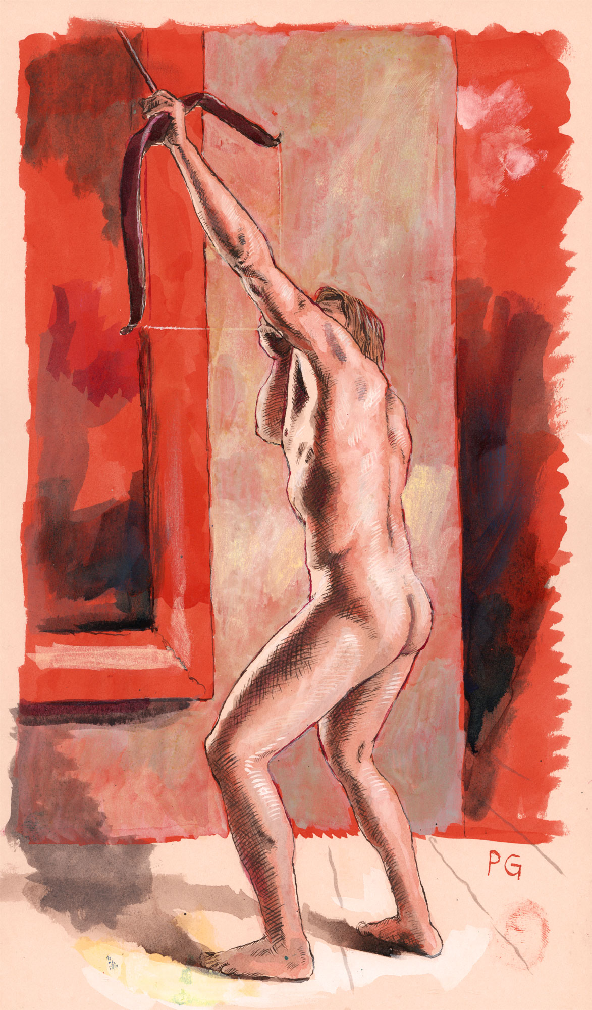 Additional keywords: original art, drawing, male nude, arrows