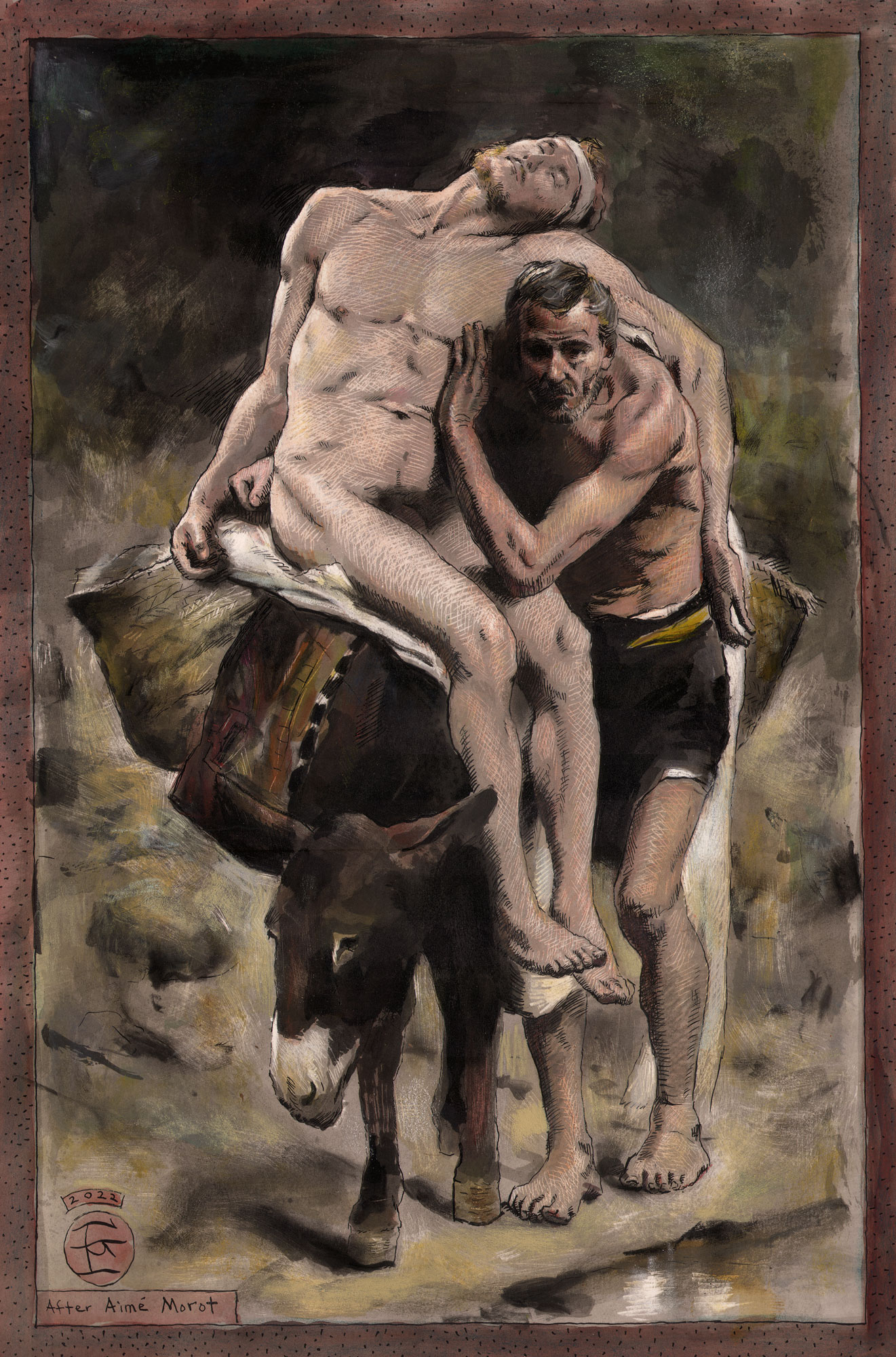 "The Good Samaritan (after Morot)" Original Mixed-Media Work on Paper | Free Shipping Worldwide
