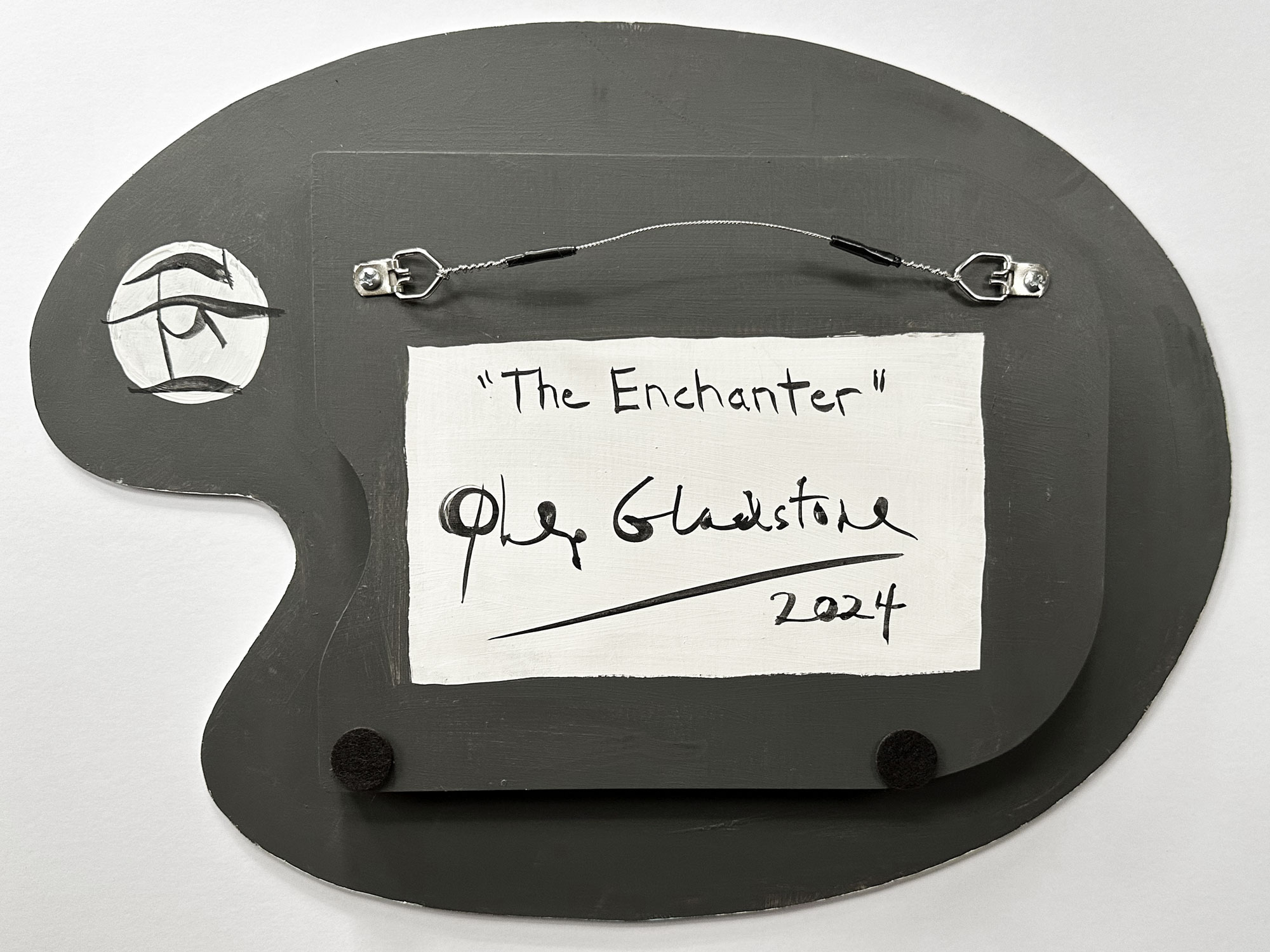 "The Enchanter" is an original acrylic painting on a panel in the shape of an artist's palette by Philip Gladstone